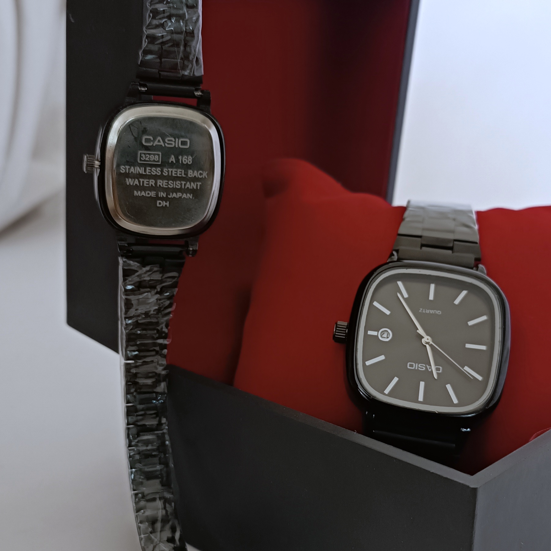 راستشو بخوای، دیگه وقتشه یه ساعت خفن و متفاوت داشته باشی! این کاسیو فول بلک همونیه که دنبالشی، بیا تا بهت بگم چرا!😍ویژگیها در یک نگاه: * 💑 قابل سفارش به صورت تکی و ست * 🖤 فول بلک (تمام مشکی) * ✨ کیفیت بالا * 🗓️ تاریخ دار * 🔗 بند استیل * ⏱️ موتور کوارتز * 🎁 دارای جعبه کادویی رایگان کارتونی بریم سراغ جزئیات خفنش:این ساعتهای فول بلک (در دو سایز زنانه و مردانه)، با طراحی اسپرت و تمام مشکی، یه استایل خاص و موندگار بهت میده. شما میتونید هم مدل زنانه یا مردانه رو به صورت تکی، و هم ست کامل رو با هم سفارش بدید. ✨ * موتور کوارتز: خیالت راحت، زمان رو دقیق دقیق نشون میده. هر ثانیه حسابشده! * بند استیل: بندش از استیله، یعنی هم شیکه هم حسابی محکم و با دوامه. قشنگ میچسبه به دستت. * تاریخدار: دیگه لازم نیست هی گوشیتو دربیاری ببینی چندمه! تاریخ رو همینجا روی ساعتش میبینی. * قفل ریلی: این قفل، با حکاکی برند کاسیو، بستن و باز کردنش رو خیلی راحت و خاص میکنه، تو یه چشم به هم زدن رو دستته و کیپ میشه. این جزئیات کوچک، اصالت ساعت رو نشون میده. * مقاومت در برابر آب: آره، خیالت راحت! تو شستن دست یا اگه یهو یه ذره آب پاشید روش، طوریش نمیشه. ولی خب، غواصی باهاش نرو! 😉این ساعت، یک خرید عالی و آماده برای تکمیل استایل توست! 🎁جعبه tv در عکس به صورت جداگانه قابل سفارش است
