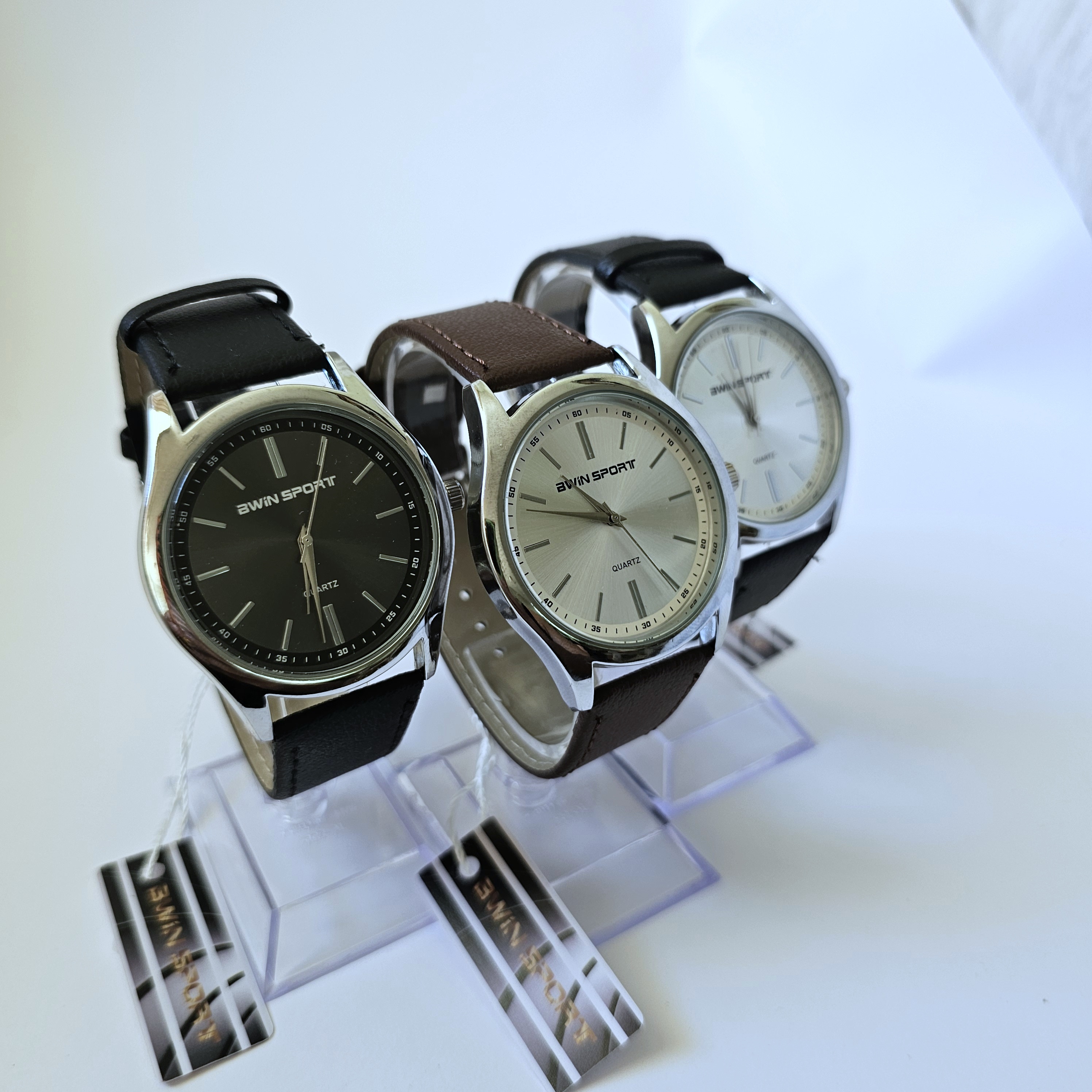 ساعت BWIN SPORT، سادگی شیک برای هر لحظه! ✨ویژگیها در یک نگاه: * ⌚ برند BWIN SPORT * ⏱️ موتور کوارتز دقیق * 🔗 بند چرم مشکی و قهوه ای با دوخت دو طرفه * 🎨 تنوع رنگی: صفحه نقرهای و مشکی * 💎 طراحی مینیمال و کلاسیک* 🎁 جعبه هدیه ای رایگان توضیحات کامل محصول:وقتشه یک ساعت داشته باشی که در عین سادگی، نهایت زیبایی رو به استایلت اضافه کنه. ساعت BWIN SPORT با طراحی مینیمال و در دو مدل صفحه نقرهای و صفحه مشکی، انتخابی هوشمندانه برای هر سلیقهای است. 🤩با موتور کوارتز دقیق این ساعت، همیشه از زمان جلوتر هستی و بند چرمی مشکی و باکیفیتش هم بهت این امکان رو میده که تمام روز باهاش احساس راحتی کنی. نکته جذاب این بند، دوخت دو طرفه اونه که علاوه بر استحکام بیشتر، جلوهای خاص و متمایز به ساعت بخشیده است. 😌این ساعت با ظاهر کلاسیک و تمیز خود، یک اکسسوری کاربردی و شیک برای کسانی است که به دنبال سادگی و کیفیت در کنار هم هستند.